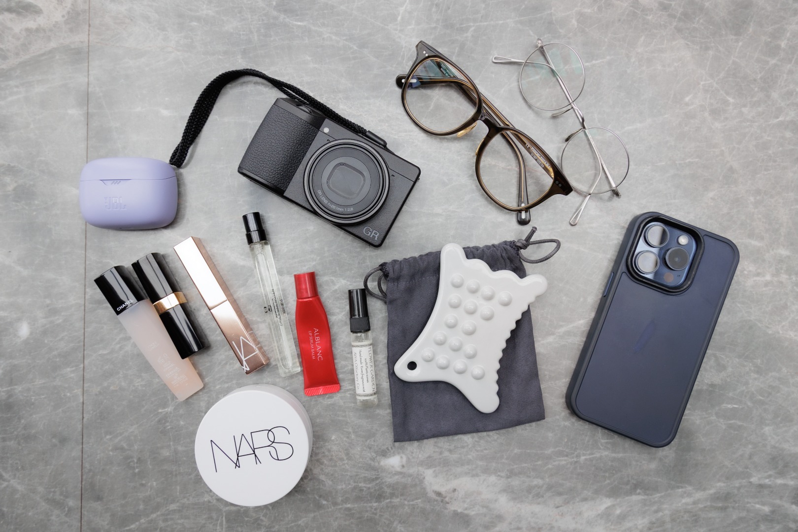 A.「必要最低限のコスメアイテムや、リフレッシュするための香りのものや、マッサージアイテムをいつも持ち歩いています。