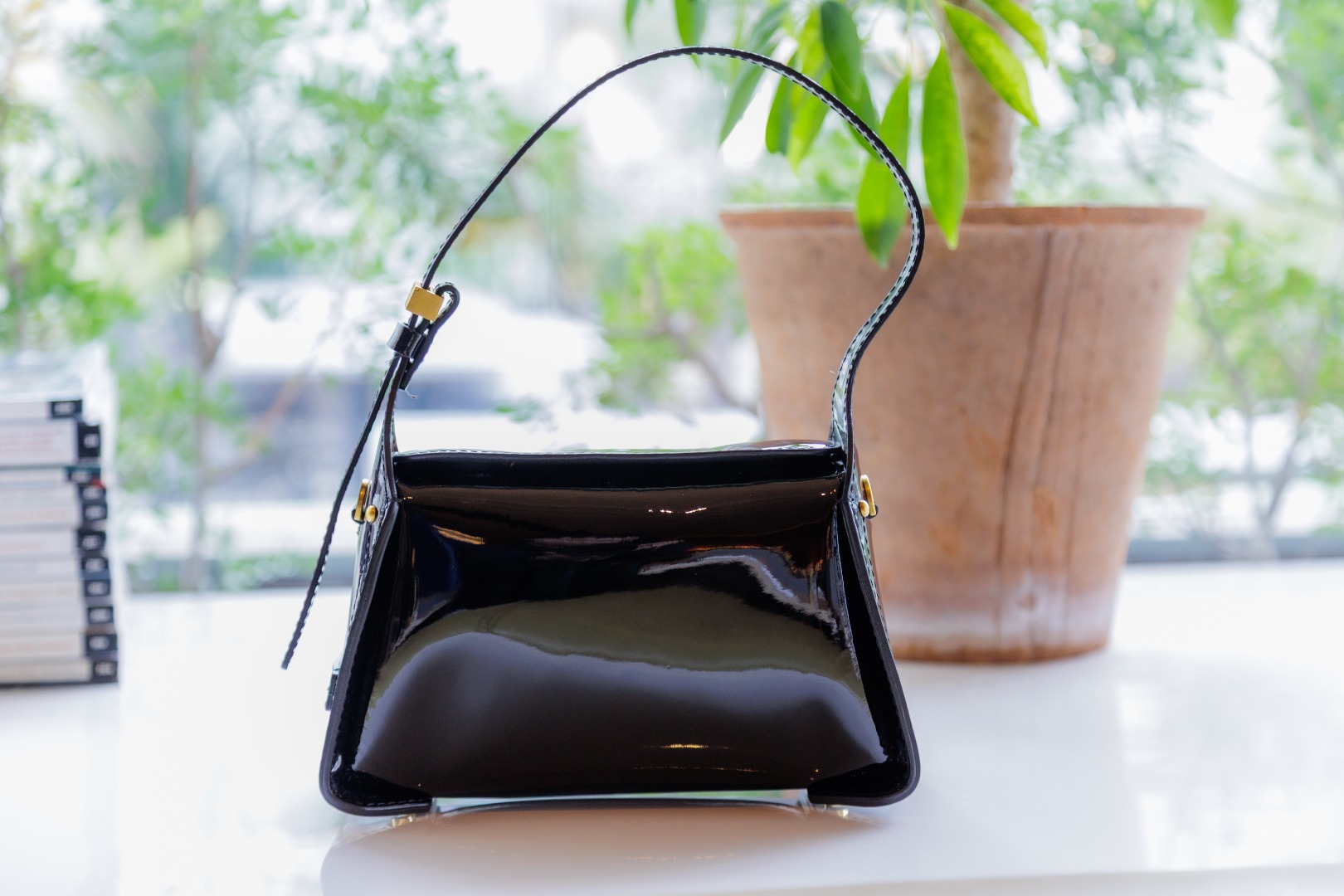 A.「過去に2つのバック(アリファ Mとスーパーライト L)を愛用していて、使い勝手やファッションとの相性がよく出番が多いのが気に入っていましたが、今回のペネロペは今まで持っていなかったエナメル素材がお洋服を新鮮に見せてくれるところとミニマムでスタイリッシュなデザインが気に入っています。」