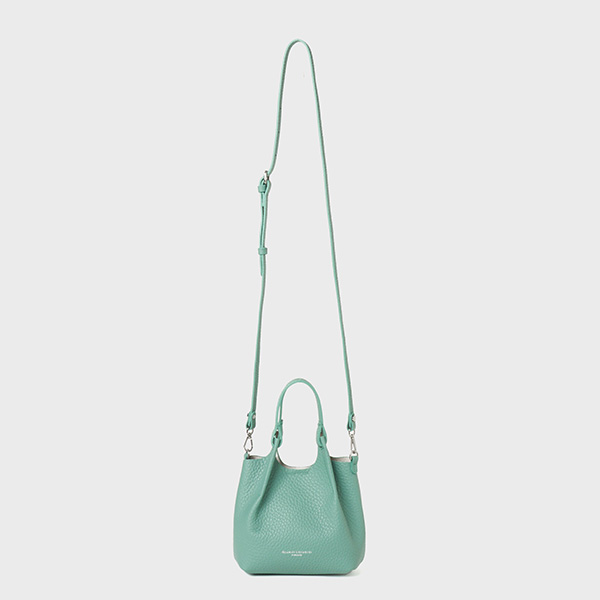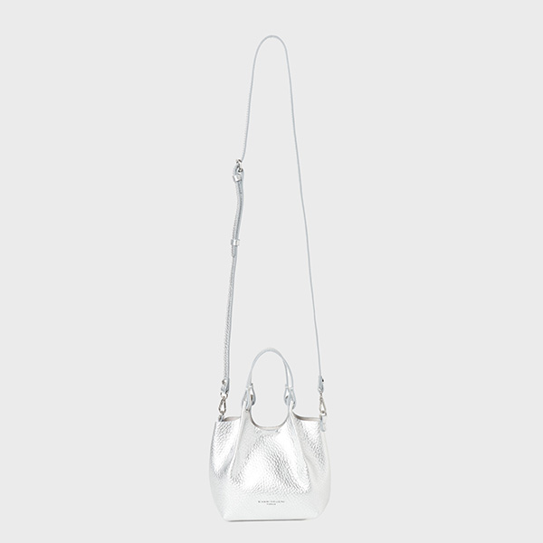 個性的なシェイプと凹凸感あるレザーのコンビネーションが魅力的なミニサイズのデュア。タイムレスなデザインとライトウェイトの利便性を兼ね備えたアイテム。取り外し可能なショルダーストラップ付きでクロスボディバッグとしても着用が可能です。